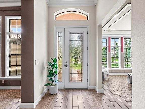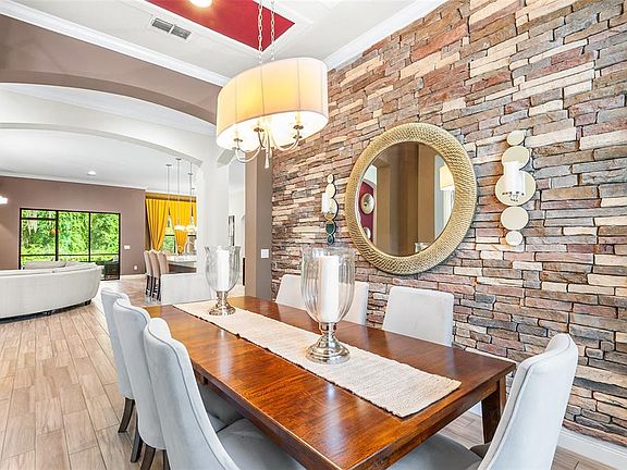 PRICE ADJUSTMENT! Welcome to Your Dream Home in Grandefield of Poley Creek. From the moment you step inside, this magnificent model home will take your breath away. A floor-to-ceiling custom stone accent wall sets the tone for the elegance and detail you’ll find throughout. The heart of the home is the spacious kitchen, complete with dark walnut cabinetry that spans floor-to-ceiling, granite countertops, and an oversized layout perfect for entertaining. With built-in Bluetooth speakers throughout, hosting family and friends has never been more enjoyable. Premium finishes abound, including 12-ft ceilings, 8-ft doors, elegant crown and base moldings, graceful archways, and a durable tile roof. Modern upgrades such as a Culligan whole-home water softener with reverse osmosis system, security cameras, and a fully fenced backyard ensure both comfort and peace of mind. Step outside to your screened-in lanai and take in the tranquil view of the private nature preserve—no backyard neighbors, ever. Designed for flexibility, this home offers an office and an upstairs bonus room with a private bath, easily adaptable into additional bedrooms—giving you up to 5 bedrooms total. And with an oversized 3-car garage, there’s no shortage of space for vehicles, storage, or hobbies. Nestled in the highly sought-after gated community of Grandefield of Poley Creek, you’ll enjoy resort-style amenities including tennis and pickleball courts, scenic walking trails, and a community park. Don’t miss the opportunity to make it yours. Schedule your private showing today!
