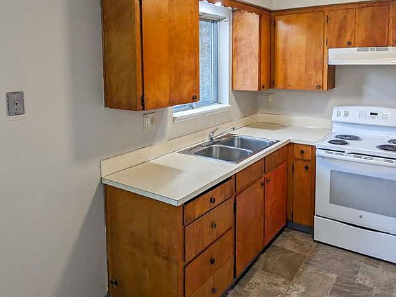 The kitchen in this apartment includes a stove/oven, refrigerator, and double sink. Other features of the unit include ceiling fans, carpet and laminate flooring and onsite parking for one vehicle. There is an onsite laundry room for tenant use.