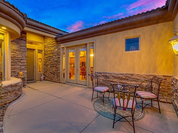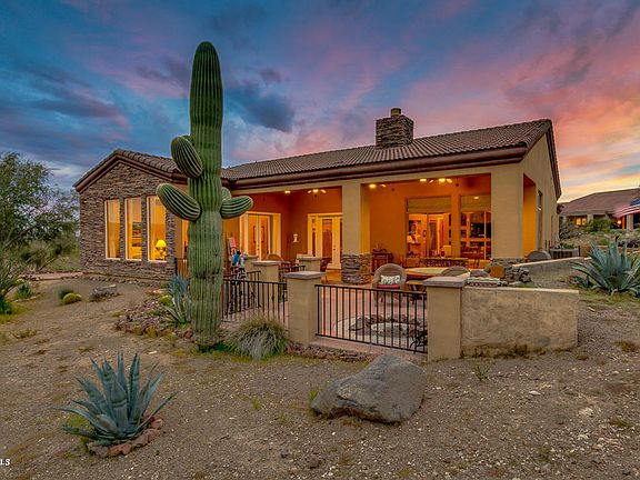 Situated on over an Acre Lot w/SPECTACULAR Superstition Mountain Views Feat. a Split Great Room Floor Plan, Dramatic 14ft Ceilings w/Wood Beams at Great Room, 18'' Travertine Flooring, Accent Paint, Gourmet Kitchen w/Breakfast Bar, Huge Island, Granite Slab Counters w/Travertine Backsplash, Raised Panel Cabinets w/Hardware & Crown Molding, Double Ovens, Glass Cook Top, Soft Water & R/O, Fireplace w/Stacked Stone in Great Room, AMAZING Mountain Views From HUGE Master Suite w/New Picture Windows for Perfect Views of Mountains, 14Ft Tray Ceilings & Sep Exit to Patio, Travertine Shower & Bath Surround, Granite Counters & Huge W/I Closet in Master Bath, French Doors Leading to 25ft Covered Patio w/Tot Turf, 3 Fans, Firepit w/Sitting Area to Enjoy Peaceful Evening Views, 3 Car Garage w/Cabinets. ...Granite Counters & Travertine Shower Surround in both Full baths, Additional Cabinets in Laundry Room. Spectacular Mountain & City Light Views from all around home! Must See!