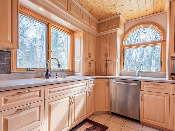 Incredible modified A-frame home on 10.3 wooded acres near Deer and Moose Lakes. This home's rustic luxury is apparent from the moment you step inside. The gourmet kitchen is a cook's dream with custom cabinetry by Boyer Woodworking featuring a unique curved breakfast bar, huge pantry and high end appliances including a sub-zero refrigerator. The list of this home's features goes on and on. A few highlights include the soaring two story ceiling in the great room, huge master bedroom, enormous second floor bath w/ walk in closet, main floor office and a gorgeous lower level bath with steam shower and heated towel rack. Also included is the lot across from the home with its 42x60 insulated and heated pole building. There is also a greenhouse, outdoor wood furnace and compliant septic. Don't forget to check out the 3D virtual tour!