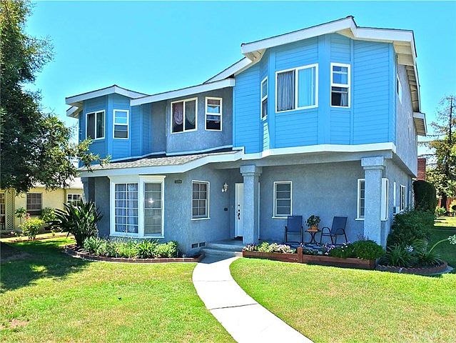 Beautiful two-story corner home on a lovely tree-lined street, in charming Bixby Terrace. Extensively remodeled with over 20 rooms including 6 spacious bedrooms, 5 baths, living room, rear family room with fireplace. Library with display cases, formal dining room, (currently used as a den), and an enlarged, updated galley kitchen with an eating area. Kitchen has Corian counter tops, abundant storage, pullout drawers in cabinets & pantry. The updated laundry room is off the kitchen for easy access & it's own door. 3/4" oak hardwood, Italian & ceramic tile plus carpeted flooring. The one bedroom downstairs is presently an office. Sunny skylight is over the staircase to the 2nd floor with the other 5 bedrooms (all newly painted, with ceiling fans, huge closets and bay windows with storage compartments). 3 large bathrooms are also upstairs. Master bath is large with a Jacuzzi tub. There is a laundry chute to the downstairs, central AC/Heating, and a craft/sun room with a sliding door to a peaceful backyard...perfect for family gatherings. The attached 2-car garage is currently a theater and will be converted back to a garage. Don't miss this home, close to great schools, parks and shopping.