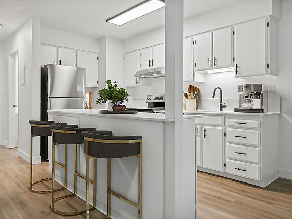 Private garagesUpdated flooringStainless steel appliancesMatte black fixturesIn-home washer and dryerQuartz countertopsSleek cabinetry