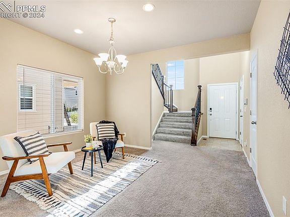 Experience the epitome of refined living in the exclusive and rapidly expanding community of The Gardens at North Carefree. This meticulously maintained Covington residence, nearly brand-new, eagerly awaits its discerning owner. Ideally situated for convenience, it grants seamless access to the vibrant Marksheffel and Powers corridors. This sophisticated two-story home presents a graceful ensemble of 4 bedrooms and 2.5 bathrooms, complemented by a meticulously landscaped yard that strikes a harmonious balance between easy maintenance and a welcoming space for your pets. Upon entering, an impressive foyer unfolds, adorned with expansive windows along the western wall. These windows not only infuse the residence with natural light but also frame captivating panoramic views of the entire Pikes Peak front range. Distinguished by a series of upscale enhancements, this residence stands apart. A thoughtfully integrated additional bedroom in the loft space enhances the versatility of your living arrangements. The kitchen, strategically positioned in the floorplan, fosters an ambiance of open, modern living, positioning itself as the heart of the home. The primary bathroom showcases double vanities at an optimal height, introducing both convenience and a touch of luxury to your daily routine. Do not miss the exclusive opportunity to transform this house into your new home. Arrange a private viewing today and immerse yourself in the beauty and comfort this exceptional property offers before it becomes someone else's cherished haven.