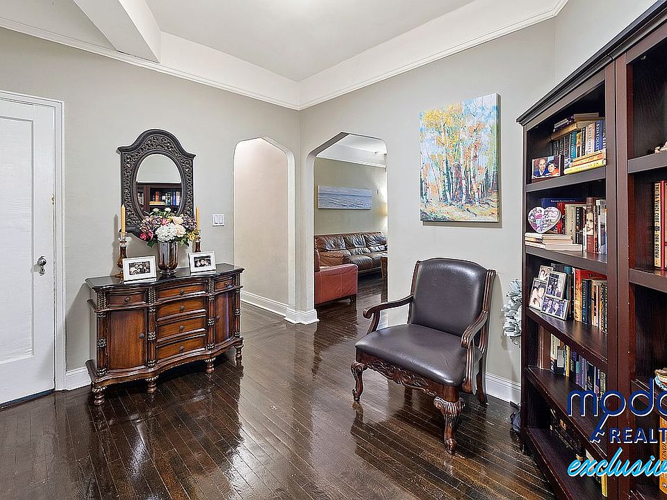Welcome home to this one-of-a-kind apartment that offers a truly unique layout rarely found in Riverdale. Enter through a spacious formal foyer that sets the tone for the home’s elegant pre-war charm, highlighted by beautifully restored original hardwood floors, classic picture moldings, arched doorways, and soaring high ceilings. The large formal living room is perfect for entertaining or relaxing, while the separate, updated, windowed eat-in kitchen features modern stainless steel appliances and provides the ideal setting for casual dining. Oversized closets throughout offer ample storage space, complementing the generously proportioned bedrooms — the primary easily accommodates a king-sized bed, and the second bedroom is equally spacious. Both bedrooms are located in the back of the apartment, providing peace and privacy. Convenience abounds with two building entrances — one on Waldo Avenue and one on Dash Place — and easy access to the gym, playroom, and laundry room, all located on the same floor. With the low maintenance of $953.60 you can own this beautiful apartment for less than rent!