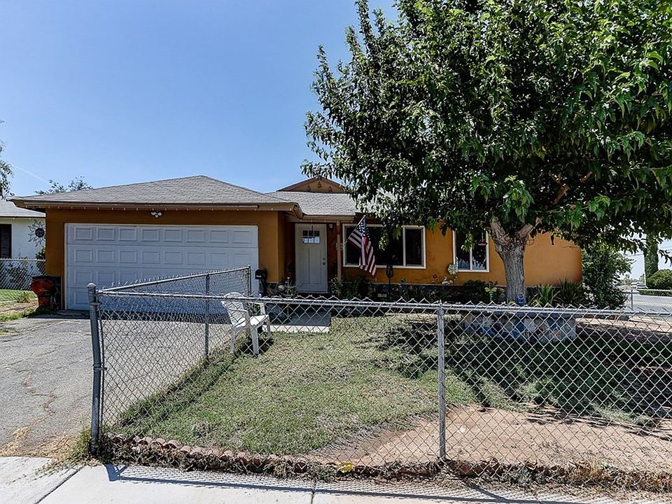Move in ready home with extra large yard! Great 3 bedroom, 2 bath corner lot home with open floor plan. The home offers beautiful laminate and tile flooring throughout, recessed lights, open kitchen with granite counter-tops, new A/C unit, new windows, spacious bedrooms, and a very large yard to entertain in, with fruit producing trees and grape vines; avocado, pomegranate, peach, and persimmons. Close to shopping and freeway. Must see!!