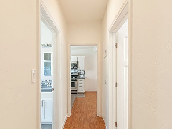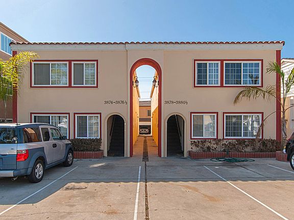 Upstairs 2 bedroom, 1 bathroom apartment, 2 blocks from Sail Bay! Enjoy the glass tile backsplash, quartz stone countertops and stainless steel appliances - gas stove, refrigerator and microwave. Vaulted living room & kitchen ceiling with remotely operated ceiling fans, crown molding & LED recessed lights. Porcelain tile floor in kitchen and wood laminate flooring throughout the apartment. Assigned off street parking & on-site laundry. Non-smoking property and strict no pets policy.