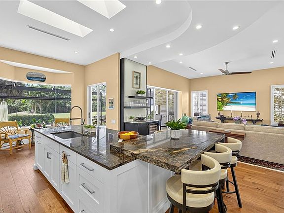 ** Full golf membership to Windstar Club eligibility ** Welcome to 3876 Clipper Cove Drive in the desirable Clipper Clove enclave of Windstar on Naples Bay. This 3 Bedroom, 3 full bathroom home has been thoughtfully redesigned and renovated by the current owners ideal for today's Naples lifestyle. Enter into an open-concept living area with soaring ceilings and gorgeous wide plank hardwood flooring. Spacious living room with built-in bar area and dining area ideal for entertaining. Wall of glass in the rear opens out to outdoor living area seamlessly blending indoor/outdoor living. Saltwater pool and spa plus built-in outdoor grill. Lovely southwestern vistas of the 10th fairway. A true chef's eat-in kitchen featuring Thermador appliances including paneled refrigerator/freezer, induction cooktop, double wall ovens, oversized island and custom shaker cabinetry. Master suite oasis with spacious bedroom overlooking tranquil courtyard. Large walk-in closet with custom built-ins. Spa-like marble bathroom including walk-in shower, double vanity and separate water closet. 2 guest suites plus convenient laundry room with great storage. 2-car attached garage. Windstar on Naples Bay is the only gated golf community with Tom Fazio designed 18-hole golf course that offers direct bay access, a private beach plus dock on Keewaydin Island with boat shuttle plus a full service 73-slip deep water marina. Newly renovated clubhouse (separate membership) with multiple dining areas with stunning views of Naples Bay and Port Royal and Royal Harbor, billiards room, 6 Har-Tru tennis courts, bocce courts and a state of the art fitness center slated for 2025. Preferred location just a short drive via car, bike or golf cart to downtown's 5th Avenue known worldwide for its fine dining, shopping and beaches. Situated in the vibrant Bayshore Arts District, Windstar is walkable to Naples Botanical Garden and Naples Pickleball Center home of the pickleball US Open. Easy access to I-75, Naples and Fort Myers airports.