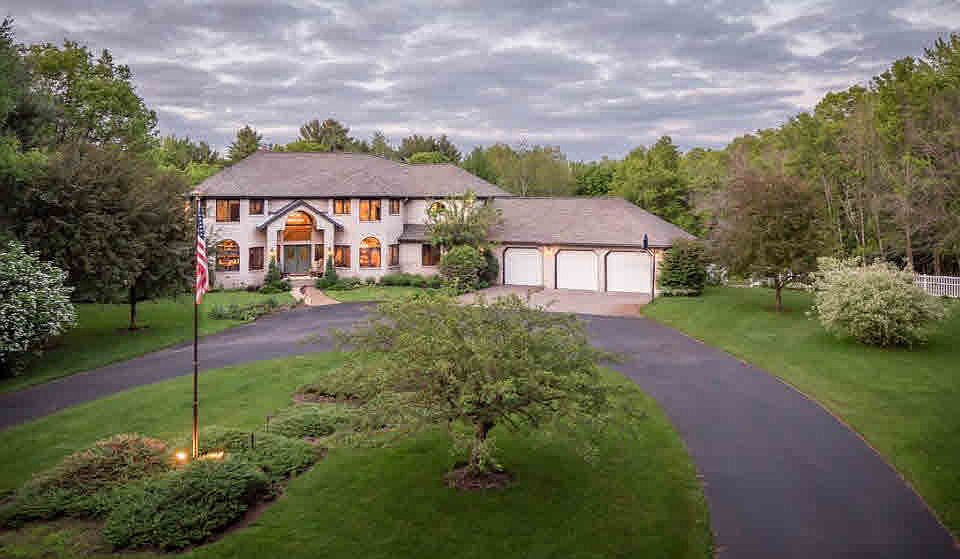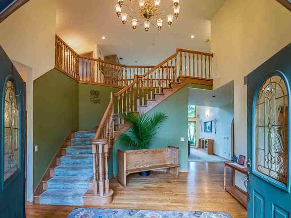 Secluded, private retreat with meticulously manicured yard w/ circular driveway. Master suite of your dreams w/ over 500 sq.ft. & walk through closet w/ dressing area and bench. Two story floor to ceiling brick wood burning fireplace with matching wall of windows in living room. Two furnaces, air cleaner, fenced in backyard, patio w/hot-tub. This estate on 30 acres- zoned res, undev & prod forest