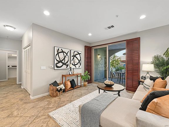 Prime Carmel Valley Location! Welcome to Pell Place, one of Carmel Valley’s most desired gated communities! This beautiful first-floor condominium offers the ultimate in convenience and lifestyle—just steps from Del Mar Highlands Town Center and One Paseo, where you’ll find upscale shopping, fine dining, and entertainment, including Cinepolis Luxury Cinema. Enjoy being just minutes from the iconic Del Mar beaches, Del Mar Race Track, top-rated schools, Carmel Valley Recreation Center, and multiple scenic parks. Inside, discover a bright, open-concept living area with fresh interior paint throughout, a modern kitchen featuring granite countertops, stainless steel appliances, and in-unit laundry. Two cozy bedrooms offer comfort and functionality—one with a walk-in closet—while both bathrooms feature beautiful granite countertops. Meander outside to your spacious private patio, ideal for relaxing or dining al fresco. Residents of Pell Place enjoy resort-style amenities, including a putting green, fully equipped fitness center, courtyards, BBQ area, EV charging stations, and a dog run. Experience the perfect blend of luxury, comfort, and contemporary living in one of Carmel Valley’s best locations—schedule your private showing today!