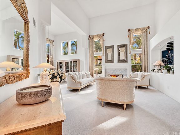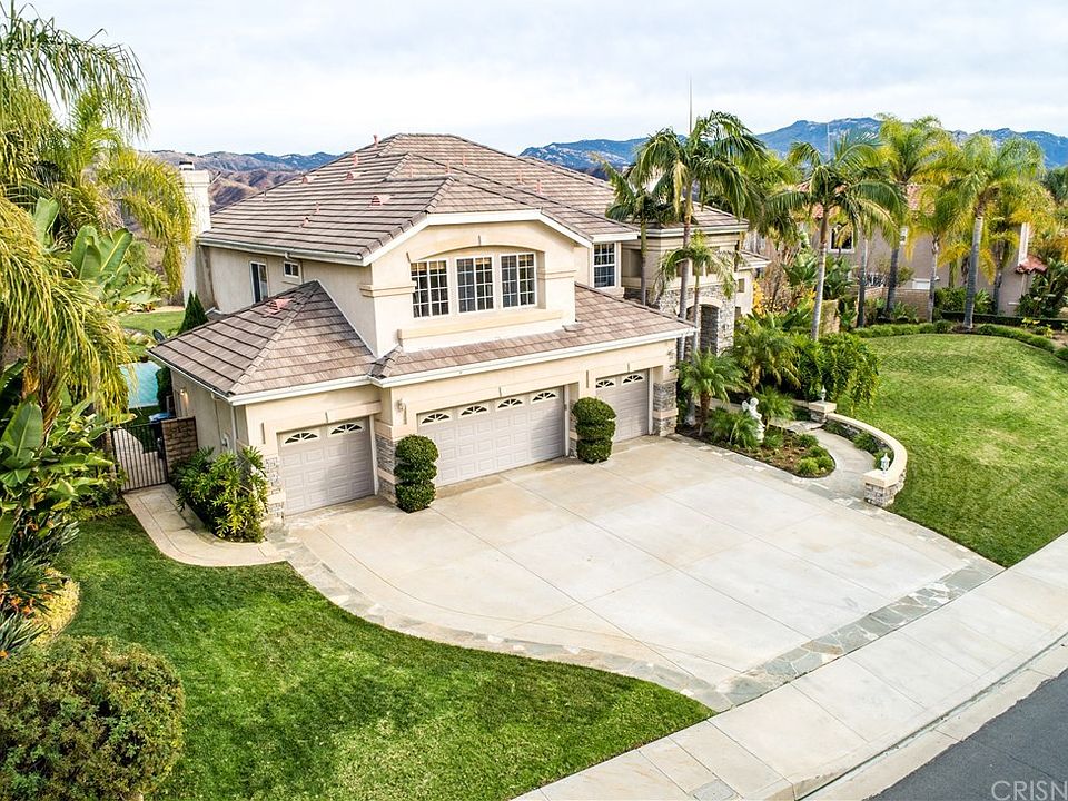 Welcome home to an AMAZING view in the exclusive Estates community. This spacious home features 5 bedrooms, 5 bathrooms, boasts pristine 180-degree canyon views and rests on over half an acre flat lot. Stone and double door entry open into a grand foyer with vaulted ceilings and large windows that shine bright with natural light. The formal living room offers a cozy marble fireplace, open floor plan and large windows. Adjacent to the living room you will find a formal dining room with panoramic mountain views. Large chef's kitchen is equipped with a five burner stove, walk in pantry, double oven, cherry wood cabinets, oversized center island, granite countertops, and an abundance of storage space. Adjacent to the kitchen is a spacious family room with large windows, a built in entertainment center and a fireplace. Private expansive master suite with panoramic views throughout boasts a fireplace, large walk-in closet, dual vanity, jacuzzi tub and spacious glass-framed shower with a built-in bench. Three additional bedrooms are each equipped with en-suite bathrooms and spacious closets. Gorgeous manicured backyard includes an outdoor BBQ area, shaded patio, sports court, playground and breathtaking mountain views. The backyard is perfect for family gatherings and entertaining. Near Calabasas, this property is located in close proximity to prime shopping, dining, hiking trails, parks, 101 freeway, Malibu, and within the award-winning Las Virgenes Unified School District.