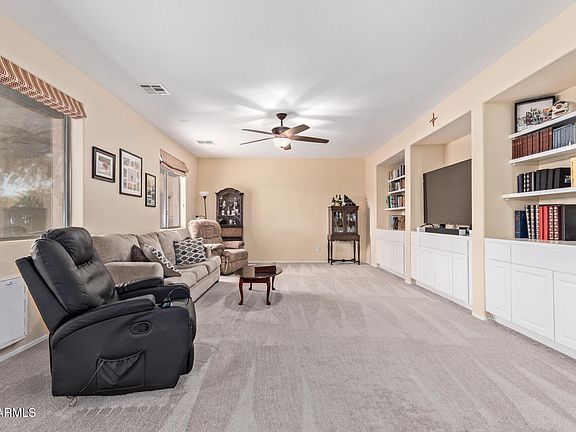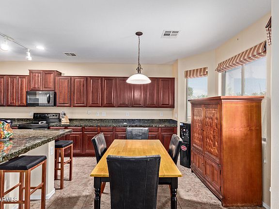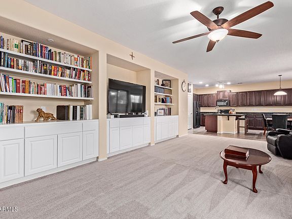Welcome to this stunning home in the highly sought-after Cooley Station subdivision, just minutes from shopping, dining, and entertainment. Featuring 3 bedrooms, 2.5 baths, 2,412 sq ft, and a 2 car garage, this home offers a spacious loft and a downstairs den/office—perfect for work or relaxation. Enjoy custom built-ins in the family room and an oversized kitchen with cherry cabinets, granite counters, a large island, and all appliances included. Additional highlights include wood shutters, upstairs laundry with washer & dryer, and HVACs replaced in 2019 & 2020. The backyard is ideal for entertaining with artificial turf, a cozy sitting area, and plenty of space. Community amenities include 2 pools, spa, parks, playgrounds, and wide open green space.