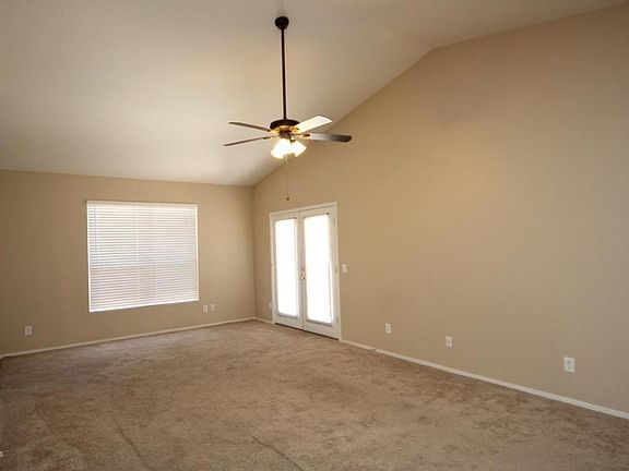 3 BR/2 BA Home with Open Floor Plan, Covered Patio & Grassy YardGreat room floor plan with split master bedroom, vaulted ceilings, ceiling fans, and full master bath with double vanity sinks and separate garden tub/shower. French doors open up to covered patio with lush grass in the backyard. In Carol Rae Ranch within walking distance of huge community park and elementary school.