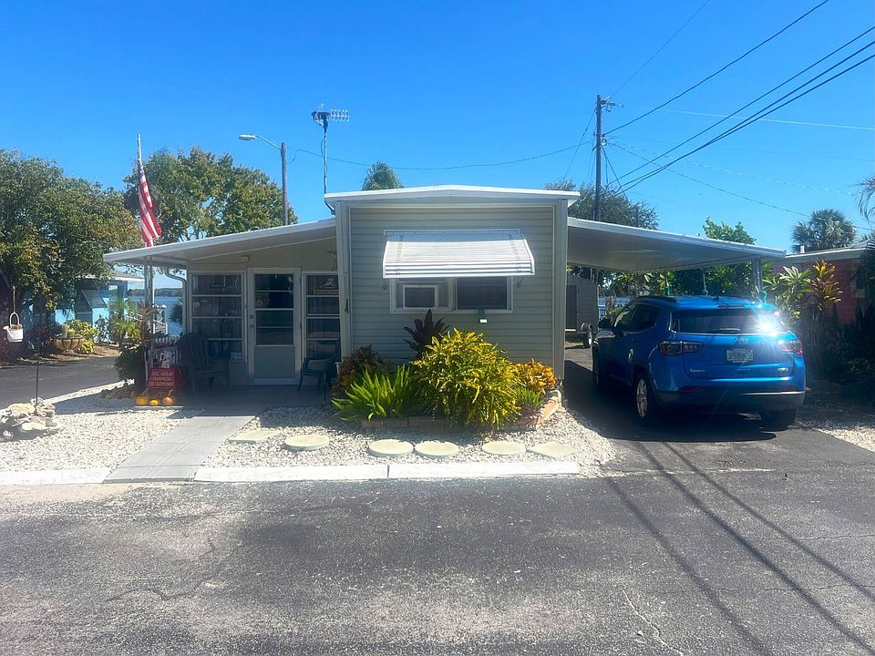 Long carportFountain faucetBack patioCozy florida roomCorner lotNew vinyl sidingWalk-in shower
