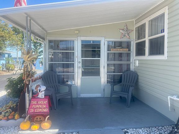 WATERVIEW, CORNER LOT ON TARPON LAKE! This PRISTINE, BEACH THEMED, FULLY FURNISHED 2-Bedroom, 1-Bathroom home is BEAUTIFUL! Enjoy EVERY SUNRISE from your BACK PATIO! Tarponaire is in HISTORIC Tarpon Springs, Florida, HOME OF THE SPONGE DOCKS! HIGHLIGHTS: Roof, Rubber-Membrane, AC 2 NEW Temperature Controlled Units, Flooring, Laminate, NEW Vinyl Siding, NEW Electric from Box to Lines, NEWER Plumbing, NEW Wall Coverings, NEW Built-in Microwave, NEW Sliding Door, NEWER Kitchen Cabinets, High-Rise Toilet, Fountain Faucet 1-Sink Vanity, Walk-in Shower, Master Bedroom fits Queen-Size Bed, 2nd Bedroom currently has a single bed, could fit a Queen, NEW Stackable Washer & Dryer, NEW Sealed Driveway, Long Carport, Cozy Florida Room and a PATIO OVERLOOKING THE WATER! THIS HOME IS A FISHERMAN'S, WATER LOVER'S DREAM! THE PEACEFUL SETTING OF THE LAKE AND MINUTES AWAY FROM THE GULF OF MEXICO! BASS FISHING TOURNAMENTS AND MUCH MORE! DO NOT MISS OUT ON THIS "STEAL" A CHANCE TO LIVE ON THE WATER! Tarponaire is a 55+ Community is a Pet Friendly Park and has a LOW Lot Rent of $730 a month, which includes Trash Pick-Up. Water & Sewer are approximately $10 a month. There is has a Clubhouse with activities and Boat Ramps it you have a Boat. The Park is 3 miles from the Gulf Beaches, Sponge Docks and minutes away from Restaurants, Shops and many Indoor and Outdoor activities! THIS IS A LOVELY HOME!
