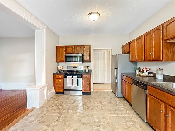 Experience refined living in the historic Davenport House Mansion c.1900 with this distinguished first-floor residence. Rich in character, the home showcases original hardwood floors, an ornate fireplace, soaring windows, and intricate moldings that speak to its timeless elegance. The expansive living room flows seamlessly into a generous eat-in kitchen with abundant cabinetry, stainless steel appliances, and additional flooring materials included for a future design upgrade. The serene bedroom retreat is bathed in natural light, while the bathroom features a pedestal sink and classic finishes. A rare opportunity to own a piece of architectural history, this well-preserved home combines period detail with modern functionality. Ideally situated in a picturesque North Adams setting, just moments from Mass MoCA, fine dining, MCLA, and cultural attractions. This residence offers both sophistication and convenience.
