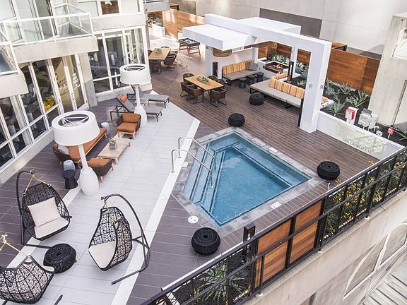 - Exterior features: Airbnb-friendly, Balcony, Bi-weekly payment program, Build credit score with RentTrack, Co-working space, Conference Room, Deposit free with Rhino, Electric car charging stations, Floor-to-ceiling windows, Flooring: Wood, Free Weights, Granite countertops, Home purchase plan, Lifestyle services powered by Amenify, Locker rooms, Meeting spaces, Moving services with Move Matcher, On-Site Maintenance, Package Receiving, Pet Park, Quartz countertops, Resident App, Stainless steel appliances, Sundeck, TV Lounge, Tile backsplash