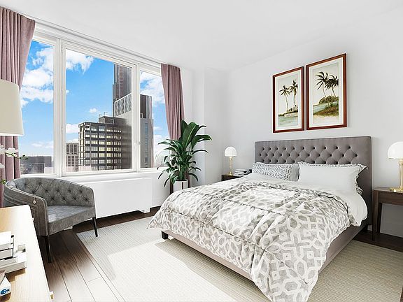 Experience the luxurious amenities offered by 388 Bridge, making it more than just a residence. As you enter, you'll be greeted by an elegant, fully-attended lobby featuring a 24-hour doorman, concierge services, and valet service for convenient package deliveries. The building is equipped with a live-in superintendent and a dedicated support staff to cater to your needs. Optional valet parking with a private entrance is available for residents. The 5th floor boasts a state-of-the-art gym, a lounge room with a separate pantry and service kitchenette, a children’s playroom, and an expansive 5000 sq ft terrace with barbecue grills and an outdoor children’s play area. For a breathtaking experience, head to the luxurious 46th-floor Sky Lounge featuring a billiard table, a cozy fireplace, and separate lounging areas where you can enjoy captivating views of NYC. Indulge in the beauty of the New York Harbor from the rooftop viewing terrace. Additional amenities include a pet spa for your furry friends, bicycle storage (at an extra fee), and a central laundry facility with oversized machines. The staff and residents of 388 Bridge eagerly await welcoming you to this exciting community!