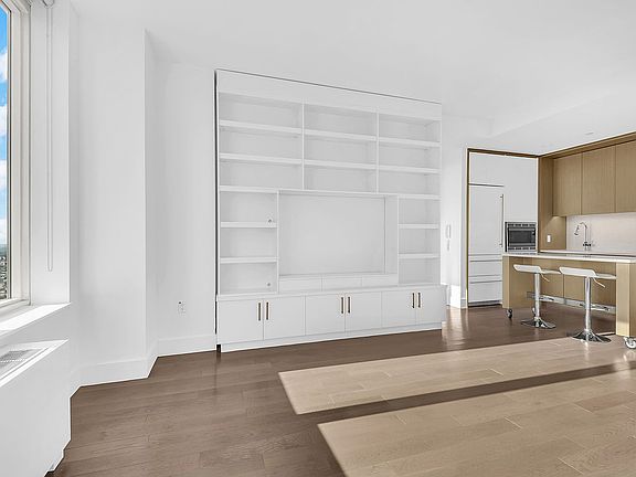 Experience the luxurious amenities offered by 388 Bridge, making it more than just a residence. As you enter, you'll be greeted by an elegant, fully-attended lobby featuring a 24-hour doorman, concierge services, and valet service for convenient package deliveries. The building is equipped with a live-in superintendent and a dedicated support staff to cater to your needs. Optional valet parking with a private entrance is available for residents. The 5th floor boasts a state-of-the-art gym, a lounge room with a separate pantry and service kitchenette, a children’s playroom, and an expansive 5000 sq ft terrace with barbecue grills and an outdoor children’s play area. For a breathtaking experience, head to the luxurious 46th-floor Sky Lounge featuring a billiard table, a cozy fireplace, and separate lounging areas where you can enjoy captivating views of NYC. Indulge in the beauty of the New York Harbor from the rooftop viewing terrace. Additional amenities include a pet spa for your furry friends, bicycle storage (at an extra fee), and a central laundry facility with oversized machines. The staff and residents of 388 Bridge eagerly await welcoming you to this exciting community.
