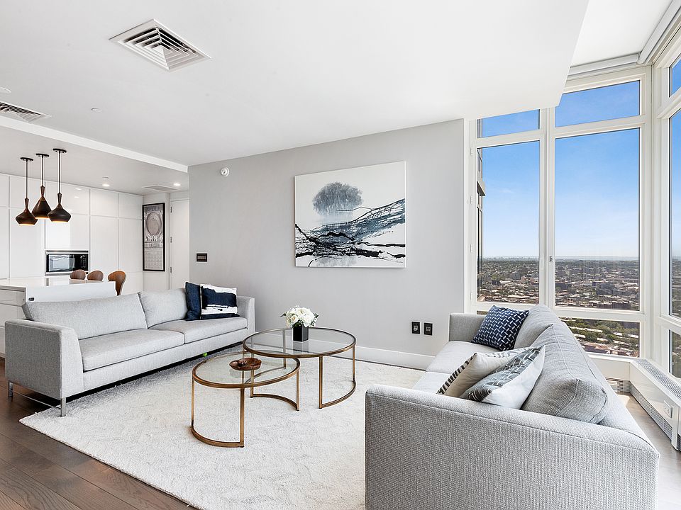 Oversized three bedroom, three bathroom penthouse with chef's kitchen, central air conditioning & heating, and triple exposure with skyline and water views. Available for immediate occupancy. Full-service luxury building with on-site parking and valet service.