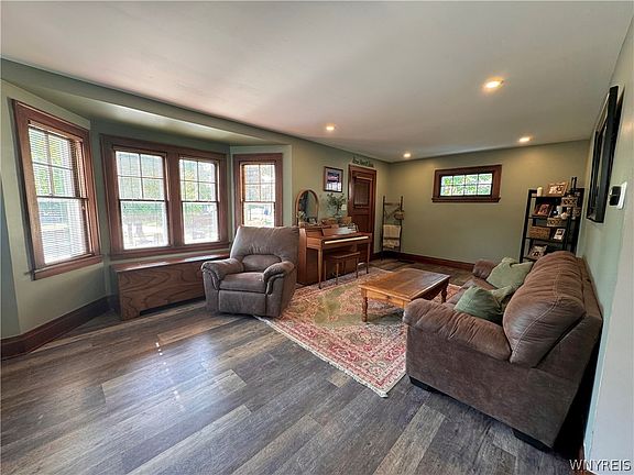 GREAT SPACE + APPEAL! 4 bedrooms (2 up/2 down), 2 FULL baths (1 up/1 down) + 2-car garage! Original woodwork, classic features, modern amenities! Updated flooring throughout the living room, dining room, kitchen, and ensuite bath, granite countertops, stainless steel appliances, brand new French door in the kitchen, massive primary BR with full ensuite bath. Both bathrooms have recently been completely remodeled and/or updated including a raised, double-sink vanity in the ensuite. New electrical service from the street and some new/updated wiring including GFCI’s, dimmers and recessed lighting in the living room. New furnace, new hot water heater, newer replacement windows throughout the upper level, kitchen, and first-floor beds/bath, gated, recently-fenced-in yard with new pressure-treated deck. Many possibilities including for investor: layout lends itself to private bedrooms, semi-private baths with shared kitchen/dining/living rooms. Please note: property and exterior recording devices on premises. BEGIN 7/26. OFFERS WILL BE REVIEWED AUGUST 3RD AT 5PM.