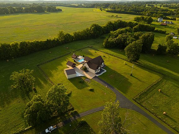 Discover a truly unique opportunity to own a multi-functional estate on 17.69 +/- fully fenced acres. This rare property features two separate homes, a versatile metal barn, and a host of outdoor amenities—perfect for multi-generational living, rental income, or creating your own private retreat. The main home is a spacious single-level residence offering 4 bedrooms and 3 full bathrooms, including a large bonus/family room ideal for gatherings or flexible living space. The open kitchen boasts quartz countertops, a stylish backsplash, and a gas range—with all appliances included. Additional features include a detached 2-car garage, natural gas with a tankless water heater, and access to a luxurious in-ground saltwater pool with a heater, paired with a custom outdoor pavilion—perfect for entertaining or relaxing in the privacy of your own backyard oasis. Brand new whole house generator for those unexpected moments! The second home, a well-maintained vinyl siding residence, offers 3 bedrooms, 2 bathrooms, and 1,324 square feet of comfortable living space, including its own 2-car garage. Ideal as a guest house, rental property, or extended family suite, it offers complete independence with separate utilities, septic system, and water tap. The metal barn on-site is equipped with electricity, water, and a gravel pad, ready to be customized as a workshop, horse barn, or hobby space to suit your needs. This property also benefits from Greenbelt enrollment, helping keep taxes low. Both homes are connected by a shared split driveway, yet fall under a single parcel, offering convenience with flexibility. Whether you're looking for space to grow, room to relax, or a smart investment, this one-of-a-kind property offers the perfect blend of function, comfort, and opportunity.