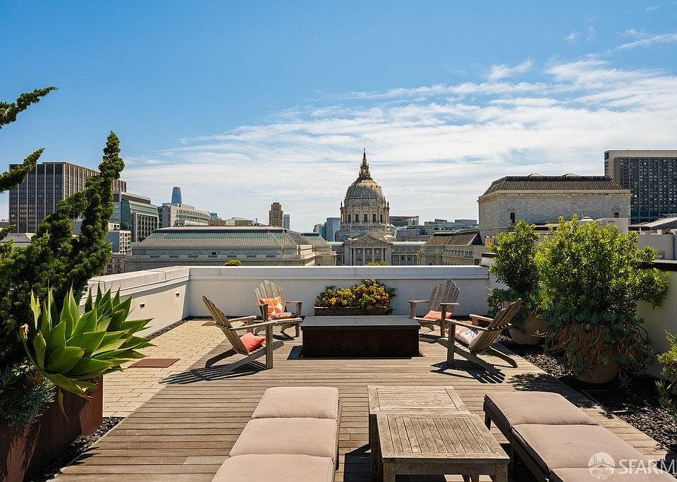Discover unparalleled modern living in the heart of vibrant Hayes Valley with this exquisite 2-bedroom, 1-bath residence. The open-concept layout features high ceilings and oversized windows that flood the space with natural light. The kitchen boasts a built-in fridge, sleek cabinetry, and stylish countertops. Designed by David Baker Architects in 2016, this contemporary building offers a seamless blend of sophistication and convenience. Enjoy the large rooftop terrace with panoramic city views, complete with a barbecue and several lounging areas-perfect for hosting get-togethers or unwinding after a long day. The building also features a lush landscaped entry courtyard incorporating feng shui principles, a flexible work lounge space, and a bike storage area. This prime location offers excellent public transport options (Muni, Bart, bus, bike routes) and tech shuttle and freeway access, and is within two blocks from shopping at the new Trader Joe's. 388 Fulton is also in the heart of the city's cultural hub, close to the SF Opera, SF Symphony, SF Ballet, SF Jazz, City Hall, and a wide array of trendy restaurants- perfect for either a primary residence or a pied-a-terre!