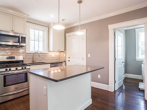 This beautiful duplex rental offers 3 bedrooms ,2 Brand new bathrooms including a Master suite on the upper level with a sitting area,and a sun splashed enclosed all seasons porch.Ultra modern kitchen and family room,with granite counters , stainless steel appliances,microwave and washer ,dryer in the unit . New windows,Heating and Central AC. New Hardwood floors .One garage parking space included. Walk to Newton Centre and the new Chestnut Hill square and Wegmans. Ready for July 1