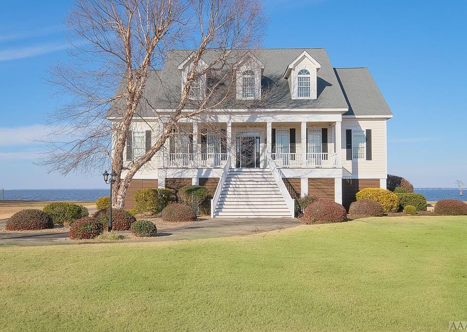 Located at Mackey's Ferry Landing on the open waters of the Albemarle Sound, this attractive William Poole designed home boasts classic curb appeal, beautiful architectural details, and an open floor plan that's ideal for comfortable living. Abundant natural light floods the living areas and the sound views are beyond description! A master suite and guest room are on the main level, and 2 guest bedrooms, an office and playroom space are upstairs. There are 3 garage bays and a large storage area underneath. A new bulkhead was installed in '17 and an 82' pier is in place. This is a dream home!
