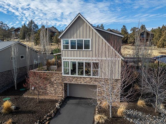 This Mountain Modern home boasts an open floor plan, soaring ceilings, and oversized windows that fill the space with natural light. The gourmet kitchen with a breakfast bar is perfect for morning coffee. The primary suite features a walk-in closet, a 5-piece bath, and stunning views of the Ochoco Mtns and Smith Rock. Two guest rooms offer flexibility for remote work or additional living space.