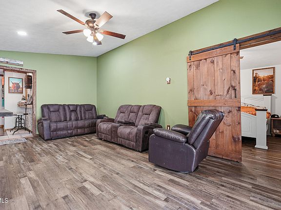 everything while providing the comfort and tranquility of a private setting. The newly added owner's suite features a beautiful custom-tiled shower, dual vanities, and a bright, relaxing atmosphere. The home's den boasts a vaulted ceiling, barn door accents, and an inviting open layout. In the kitchen, enjoy butcher block countertops, open shelving, and plenty of room for cooking and gathering. Additional features include a partial basement with abundant storage space, a dedicated utility room, and multiple areas perfect for organization. Outdoor living shines with a raised back deck, a covered front porch, carport and stunning mountain views.
