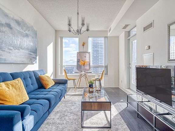 A bright and Furnished 1 bedroom + den condo in the heart of downtown Mississauga. Situated on a high floor with stunning panoramic views, this beautifully maintained unit is fully furnished and move-in ready. Property Features:* 1 spacious bedroom + functional den (can be used as 2nd sleeping area or office)* 2 full bathrooms for added comfort* Open-concept kitchen with stainless steel appliances & granite countertop* Modern living & dining space with floor-to-ceiling windows* Private balcony with unobstructed city views* In-suite laundry* Includes 1 underground parking spot. Extras:* Fully furnished (bedding, kitchenware, decor, TV & more)* Bright and elegant interior with tasteful finishes* Well-equipped kitchen and stylish furnishings. Location Highlights:* Steps to Square One Shopping Centre, Celebration Square, Sheridan College* Minutes from public transit, GO Station, Highway 403 & 401* Surrounded by dining, entertainment, and parks* Utilities: Tenants pay* First & last month required. Ready for immediate occupancy. Just bring your suitcase! *For Additional Property Details Click The Brochure Icon Below*