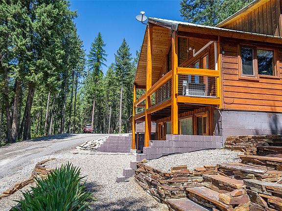 Perched atop a private road on 7.4841 acres, this stunning home with timber frame accents, offers serene living in the gorgeous Montana Mountains. Built and designed to take in the beautiful surroundings, this lovely 3-bedroom, 3-bath home has Cabinet Mountain views, and harmoniously blends its timeless design with the natural beauty of its surroundings. Rich, wood tones and expansive windows integrate the outdoors seamlessly into the comfortable open floor plan. Cathedral ceilings and abundant windows in the Great Room, create a sense of space and light, and contribute to the desirable architectural design. BlueStar propane range, along with knotty alder cabinets & granite countertops in the kitchen, ensure the chef in the family will enjoy entertaining both family & friends. Main floor has master bedroom, bathroom, & laundry. The upstairs retreat has bedroom, bath, bonus room and space for a home office. Daylight walk-out basement has family room with attractive rock fireplace, bedroom, bath, & pantry, along with plenty of storage. Every detail, from the precision-cut beams to the custom finishes, reflects the highest standards of craftsmanship. A large, covered deck with cable railing on the front of the home enhances the home's aesthetic appeal and along with a covered deck on back of the home, provides ample room for outdoor enjoyment. Three car garage and detached carport, provide appropriate storage for all your vehicles and toys. Underground bunker provides bonus space for storing your precious personal property. Small orchard along with a large fenced in garden spot, ensures you have the space needed to exercise your green thumb. Nestled in the scenic mountains of Northwestern Montana, this lovely home offers a peaceful and serene setting. Call Sharron 406-293-1150, or your real estate professional, to see this lovely home today!
