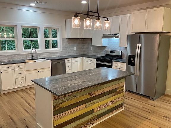 This house is gorgeous and sits on a slab foundation. The house has gas for heating with the central H/C, The kitchen has S/S appliances, double pane windows, and a remote ceiling fan. The covered front porch is 9 x 17 and the covered back porch is 14 x 17. It has a beautiful pitch and sits on a corner lot. The family room has gas logs that give out good heat and has a tankless water heater.