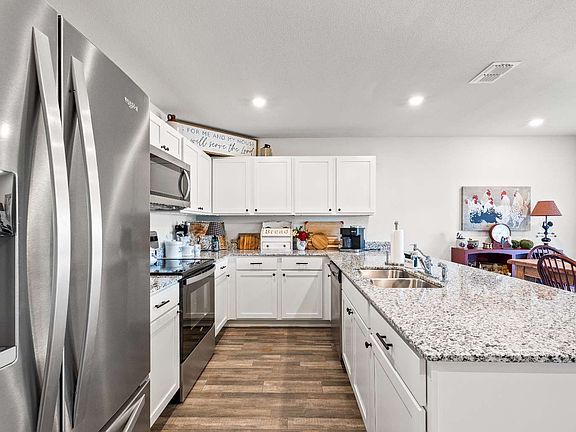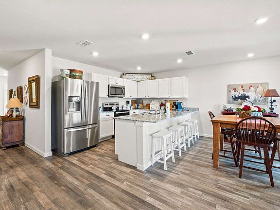 Experience refined living in this elegant 2023-built 4BR/2BA home, located in the gated Reserve at Jewel Lake. Offering 1,607 sq ft of thoughtfully designed space, this residence features a chef’s kitchen with granite countertops, stainless steel appliances, a walk-in pantry, and custom Rev-A-Shelf pull-outs in all lower cabinets. The open layout is enhanced by designer finishes, 52" ceiling fans, AT&T Fiber, and 3” plantation-style shutters throughout. The luxurious primary suite includes a spa-inspired bathroom and a spacious walk-in closet. Exterior upgrades elevate the home’s appeal with 6" seamless gutters, a full-glass storm door, a covered patio with an exterior-rated ceiling fan, dual 82' retractable hose reels, and professional aluminum landscape edging. Enjoy the peaceful surroundings and exclusive access to a private lake in one of the area’s most desirable communities. Conveniently located near local shopping and just minutes from I-75 for an easy commute to Gainesville, FL or Valdosta, GA.