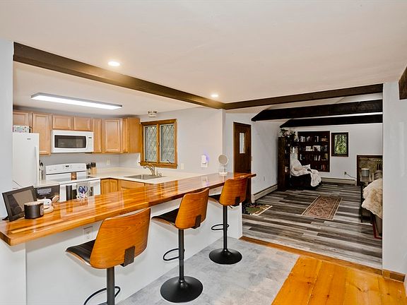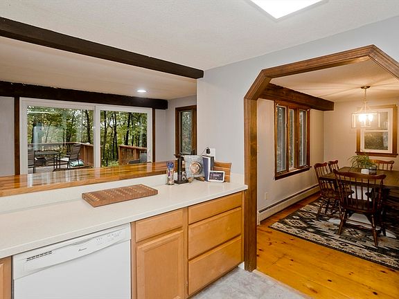 Charming 3-bedroom, 1.5 bath home in a serene country setting with beautiful mountain views. Enjoy outdoor living on the wrap around deck overlooking the fenced backyard and stone walls. Inside, the remodeled kitchen features quartz countertops, new cabinets, and a breakfast bar. Both bathrooms tastefully updated. The dining & living room each have fireplaces with a pellet stove in the living room. Wide plank eastern pine floors run through most of the home. The extra-large family room offers new luxury vinyl flooring and a cozy wood stove. Comfort is ensured with several new mini split HVAC units. Unique touches include a front door originally from an English pub. Detached 3 car garage provides abundant storage. Don’t miss this special property-call today for a private showing!