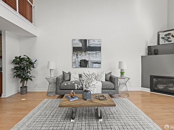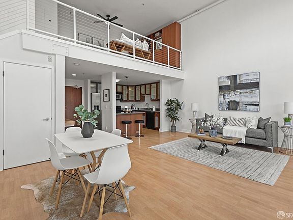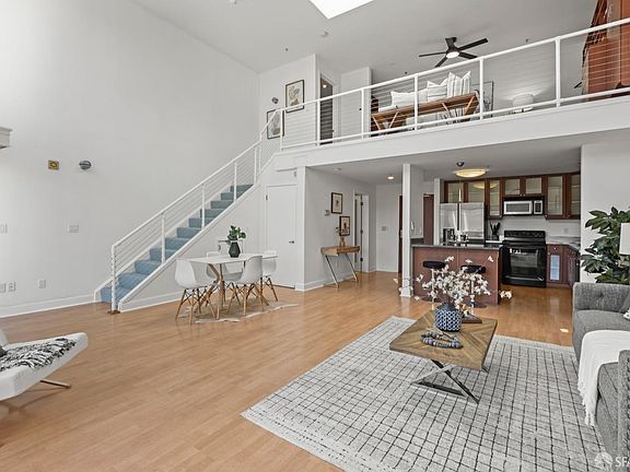 Huge price reduction! Incredible opportunity! Beautiful light-filled top floor 1 BD loft with 2 full bathrooms, private balcony, gas fireplace, in-unit Washer/Dryer and 1 car parking. The main level boasts an open living-dining-kitchen area, a full bathroom, a private balcony, and extra storage under the staircase. The kitchen features great cabinet storage, electric range, dishwasher, microwave, granite countertops and island. Large east-facing windows and a large skylight (opens for even more fresh air) bathe the entire unit in natural light. There is new paint throughout and new carpet. This city lover's dream home includes one deeded parking and storage room in a secure community. Caltrain Electrification coming in fall 2024 to reduce any noise! Located between two of San Francisco's most thriving neighborhoods - Mission Bay and South of Market, this loft-style condo is perfect for entertaining, comfortable living & spacious home office! Steps from Embarcadero Waterfront, Giants Oracle Park, Warriors Chase Center, Michelin Star restaurants, trendy bars, Safeway, fitness/yoga studios, Caltrain, Muni, T-Line and freeway access to East Bay/Peninsula. Low HOA dues $493/mo. includes water, garbage, common area maintenance, and professional management.