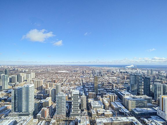 Wow! The eastern view Of 74th Floor. The Aura - A Landmark Of Toronto. Enjoy This 1393 Sq-ft Unit With A Panoramic View Of Toronto And Lake. A True Downtown Living in an elegant building. Direct access to College Park Subway. Minutes to U of T, MTU, Eaton Ctr, Hospitals, Financial District, many shops and restaurants. **EXTRAS** Floor To Ceiling Windows, Fitness Club Membership. Roof Top Garden And Bbq, Party Room, Cyber Lounge, Home Theater, 24 Hr Concierge And More.