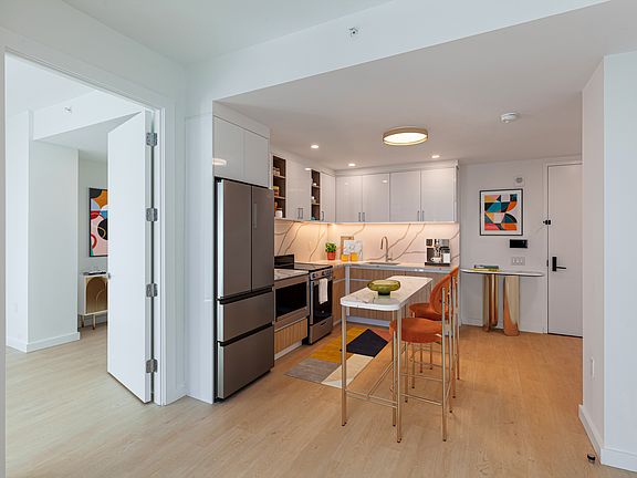 Inwood Living features a mix of graciously appointed studio, 1br, 2br 3br layouts, with few select units featuring private outdoor space. A blend of modern naturalism, each unit features floor to ceiling windows, wide-plank flooring in natural blonde and tall ceilings that enhance the sense of spaciousness and light. Modern kitchens boast silver sand Quartz counters, abundant custom design cabinetry, and a stainless steel appliance package that elevates both style and functionality. Retractable kitchen faucets, Washer/Dryer in unit, integrated microwaves, dishwashers streamline meal prep and ensure effortless cleanup in this contemporary culinary sanctuary. Ample closets space.