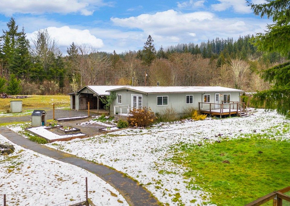 Located near the Beaver Valley store and just 10 min from the Hood Canal Bridge, this property has so much to offer including peace and quiet! Just shy of an acre, this sweet double wide, 3 bedroom/ 2 bath home is ready for you to call it home. Master bedroom features French doors that lead on to a private deck. Cozy up to the free-standing wood stove in the living room area on those cools days, or enjoy a summer BBQ on the large composite deck off of he family room. Property features a detached carport and additional outbuildings, garden area with raised beds, chicken coop and a large firepit perfect for making s'mores. So many possibilities - this could be the perfect little mini farm!