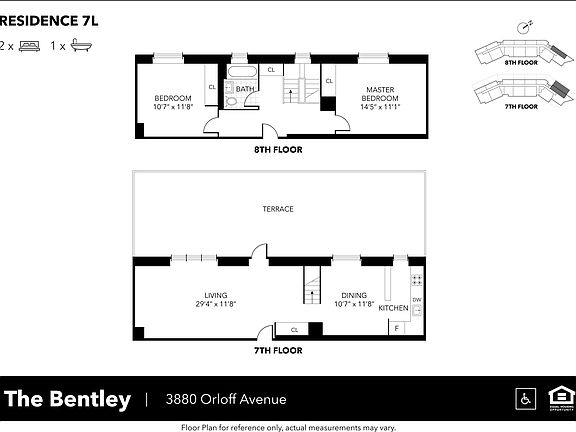 Bright and Open 2 BEDROOM, 1 BATH duplex apartment with huge private terrace, large living area, plenty of windows, and closets; Middle Income Apartments; Income Requirements Applicable. NO Broker fees allowed; NO guarantors allowed.