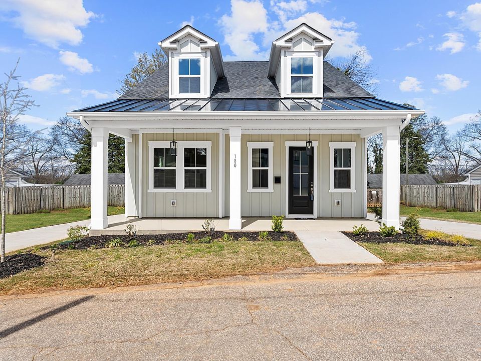 The Madison plan offers a spacious and open floorplan, coming in at just under 2,000 square feet. Reflecting traditional Charleston architecture, the Madison features an open foyer with a staircase at the entrance, welcoming you into the home. As you enter the living space, you're greeted by a large family room that seamlessly flows into a dining area with two windows and a kitchen featuring a large island for extra counter space. The primary bedroom is located on the main floor of this cottage and includes a large walk-in closet and a master bath with linen storage. The second story of the Madison plan houses two secondary bedrooms that share a full bath and have access to abundant under-roof storage space. ***Photos are used for marketing representation only***