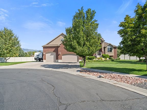 Custom 2-Story Retreat on 1 Acre in Joni Acres. Nestled on a quiet cul-de-sac, this custom-built home is designed for both everyday comfort and unforgettable entertaining. The full acre lot is a true paradise, featuring an 18x36 heated saltwater pool, a 6-person hot tub with gazebo, and a covered deck complete with sun shades and water misters, perfect for summer gatherings or peaceful evenings at home. The backyard also includes a fenced-in doggy play zone, a private patio off the basement entrance, and a spacious 16x52 RV pad for all your toys. Inside, thoughtful upgrades abound: new solid vinyl double-glazed windows, custom cabinetry, and a stunning granite kitchen island. The fully finished basement with kitchenette and private entrance is ideal for a mother-in-law suite or guest quarters. A 175' x 60' section of the lot (east side) is fenced and could be the perfect spot for an ADU. The oversized garage is a dream, with a 23x25 two-car side plus a 15x40 third bay, epoxy flooring with a lifetime warranty, a storage loft, and a custom workbench. Additional features include a Vivint security system with cameras and motion sensors. Beyond the home, enjoy all that West Haven City has to offer close by: Pickleball courts at the Courtyard at Green Farm, awesome fishing at nearby Poulter Pond, paved walking trails, and The Barn at Green Farm Community Center, a stunning rental space for weddings, birthdays, or baby showers.