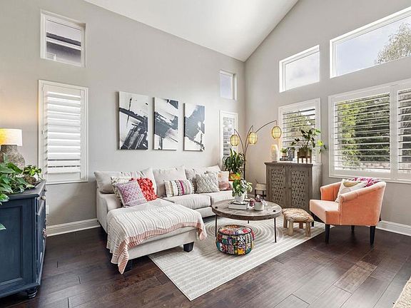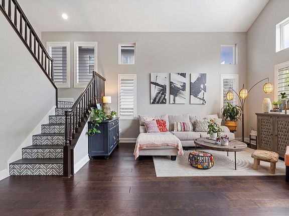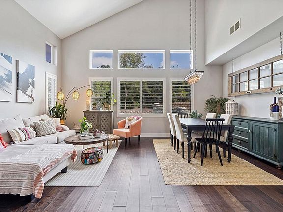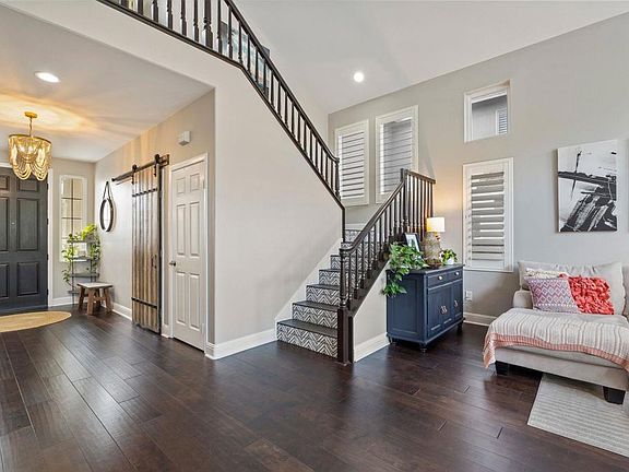 This stunning, turn-key home has been impeccably remodeled to offer modern elegance and comfort. As you enter through the inviting foyer, you're greeted by bright, open living and dining areas with soaring double-story vaulted ceilings. The main level features a versatile office/4th bedroom and a full bathroom with a shower is just across the hall. Every detail, from the modern kitchen and bathrooms to the updated LED lighting and Nest thermostat, has been thoughtfully updated. The remodeled kitchen boasts white shaker cabinetry, a large center island with exquisite solid stone countertops, designer pendant lighting and high-end stainless steel appliances. It seamlessly flows into the family room with a gas fireplace and sliding glass doors that open to a resort-style backyard with pool and spa. Upstairs you will find the luxurious master suite offering a spacious walk-in closet and a beautifully remodeled bath with a custom marble shower and dual vanities. This energy-efficient home includes an OWNED SOLAR power system, contributing to both sustainability and cost savings. Ideally located less than a quarter-mile from hiking trails and Calavera Hills Elementary and Middle Schools.