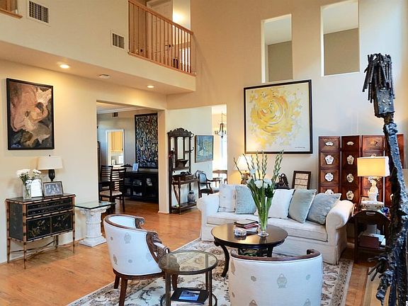 Sited on a cul-de-sac in the highly desirable community of Belmont Estates, this 4 bed/3bth home is not to be missed! Light filled formal living room with vaulted ceiling greets all those that enter. Open concept kitchen/den with direct access to backyard. Additional fireplace located in den perfect for those winter movie nights or Sunday afternoon football sessions. Formal dining room with access from kitchen and formal living room. Downstairs bedroom and full bath affords the option of a home office or extra guest bedroom. Upstairs, Jack & Jill bedrooms share recently renovated bathroom. Private Master ensuite located at the end of the hallway. Extra large bedroom with dual vanity bathroom, separate shower stall and sunken bathtub, walk-in closet and private powder room. Upstairs laundry room has been converted to additional closet/storage space. Zen inspired backyard overlooks designated green space for added privacy. 3 car garage with laundry hookups and extra overhead storage. 1 garage bay has been converted to studio/workshop area with direct access to side/back yard.