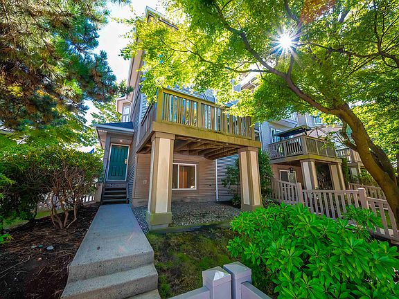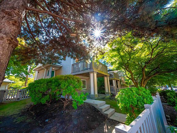 Mayflower built by Polygon, south facing corner unit, located in Terra Nova, which offers 4 bedrooms with 3 full bathrooms, 3 levels of total 1619 sqft, 9' high ceiling. Cozy south facing living room with gas fireplace features a sunny balcony and beautiful Cherry blossoms view in spring. Bright kitchen with windows provides a spacious dinning area. Walking distance to school, shopping mall and public transit. Great facilitites wih outdoor pool, excercise center and media room.YOU MUST SEE !!!