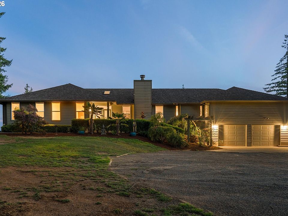 A rare opportunity on nearly 20 private acres offering exceptional versatility, privacy, and endless potential. This custom-built home welcomes you with high ceilings and an inviting foyer that opens to a spacious living room with a wood-burning fireplace and formal dining area—perfect for gatherings.The heart of the home features a large family room with woodstove flowing into the kitchen, complete with an oversized island, abundant counter space, ample storage, and two dishwashers, ideal for entertaining. A slider off the kitchen and additional dining space leads to the back deck, overlooking a peaceful, secluded backyard. The property backs to the GP moto course, creating a truly unique setting.The home offers 5 bedrooms, including a generous primary suite with deck access to the backyard and hot tub, dual sinks, and a walk-in closet. One wing of the home can function as a mother-in-law or guest suite with a connecting bathroom, offering flexible living options.Outside is an impressive 60’ x 40’ shop with tall roll-up doors, plus a 30’ x 40’ second-floor shop space with high ceilings. Both the home and shop are equipped with 400-amp power, and there are two separate septic systems—one for the house and one for the shop. Additional features include floor drains, a utility sink, and an RV dump station conveniently located near the driveway.Enjoy expansive acreage with room for parking, hobbies, or future event/venue possibilities. A two-mile GP motocross course is on the property with access to Mountain View MX, one of the Northwest’s premier motocross tracks.Recent updates include a newer 50-year roof, new windows and doors within the last four years, LeafGuard gutters, and a newer hot tub.Additional opportunity: An adjacent 13.28-acre tax lot holding the main track is also available MLS #721335934.A truly one-of-a-kind property with unmatched potential.