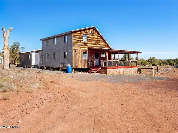 Discover a rare opportunity to own this beautiful 40.81-acre ranch complete with a charming two-story home. The property is dotted with large, mature trees, expansive open spaces, and offers breathtaking views of Bill Williams Mountain right from the porch.Inside, the home features 2 bedrooms, a loft, 1 full bathroom, and abundant storage, making it both functional and comfortable.The ranch is fully equipped for recreation and country living, boasting a private shooting range, archery range, two storage sheds, and a barn. Privacy and serenity are unmatched here, with endless space to roam and explore.This home is self-sustaining, running on a solar system, a wood-burning stove, with a conventional septic system, propane, and a backup generator for reliable off-grid living.Whether you're looking for a full-time residence, a weekend retreat, or a private homestead, this Ash Fork ranch is a true find.