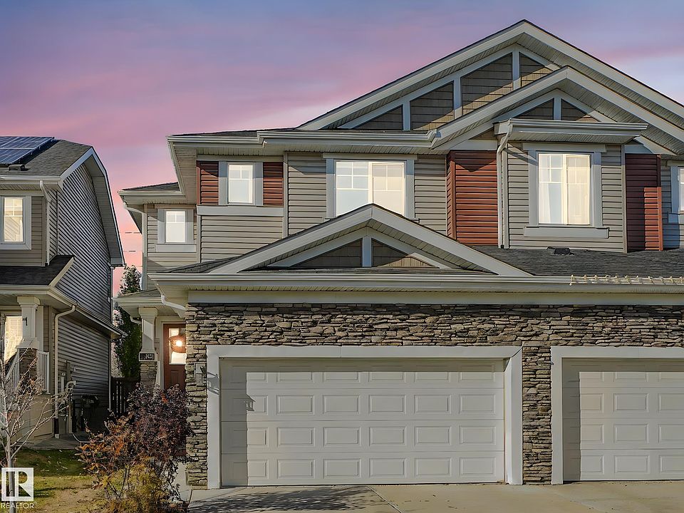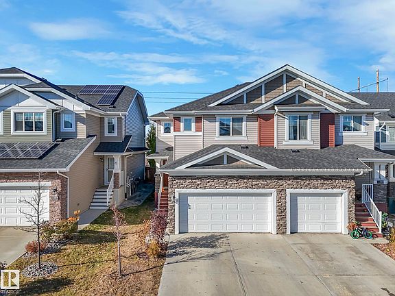 Beautifully maintained half duplex, backing onto Ravine and walking trails in desirable Starling! This modern 3 bed, 2.5 bath home features an open-concept layout with quartz countertops, white cabinetry, tiled backsplash, and a functional eat-up island. New appliances including the fridge and dishwasher. Upstairs offers a spacious primary suite with walk-in closet and ensuite, plus laundry and bonus space. Upstairs you will also find 2 additional bedrooms. Enjoy year-round comfort with NEW central A/C, a fully landscaped yard, large rear deck, and double attached garage. Steps to parks, trails, and minutes to St. Albert and the Anthony Henday! The incredible view from the home and backyard make this one truly exceptional!