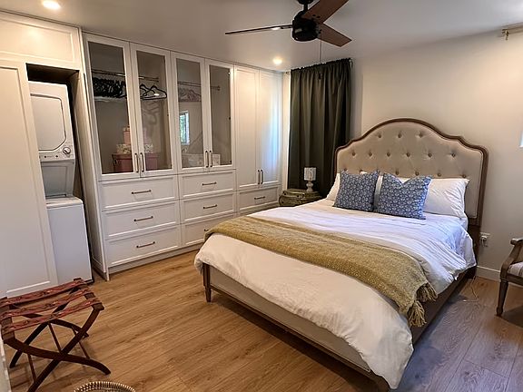 Newly built ADU! Charming 2-bedroom, 1 bath ADU offers a serene, park-like setting complete with a lovely shaded front patio perfect for relaxing outdoors. Inside, you'll find all-new appliances, including an in-unit washer and dryer. Designed for comfort, the home is ideal for two guests and features a cozy master bedroom with a queen bed, along with a second room thoughtfully set up as an office. It is fully furnished and ready to move in. We do allow pets, depending on size and type. There will be a nonrefundable one time pet fee as well as a refundable pet deposit.