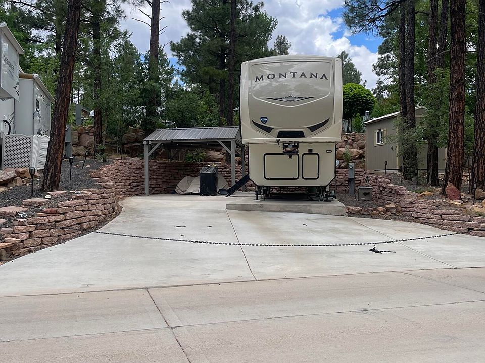 White Mountain Vacation Village is an amazing community. Vacant Land with cement slab, Ramada with electricity, lights, fan and shed. 5th Wheel also available for sale with separate bill of sale. Montana 3701LK 5th Wheel is 40 feet on cement slab, 2018 barely used, loaded with leather couches and chairs, king bed, 4 bump outs, washer/dryer/frig, sleeps 6-8. Club House activities can range from fitness, card games, board games, mahjongg, pool, bunko, bocce ball and corn hole along with a variety of community socials to better acquaint you with your neighbors. HOA covers water, sewer, trash, club house, laundry, Fiesta trail area.